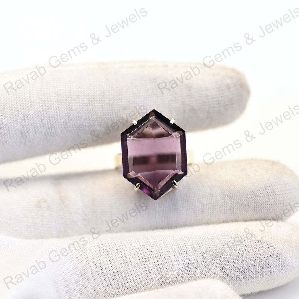 Product Name:Amethyst Quartz Hexagon Sterling Silver Gold Plated Statement Ring