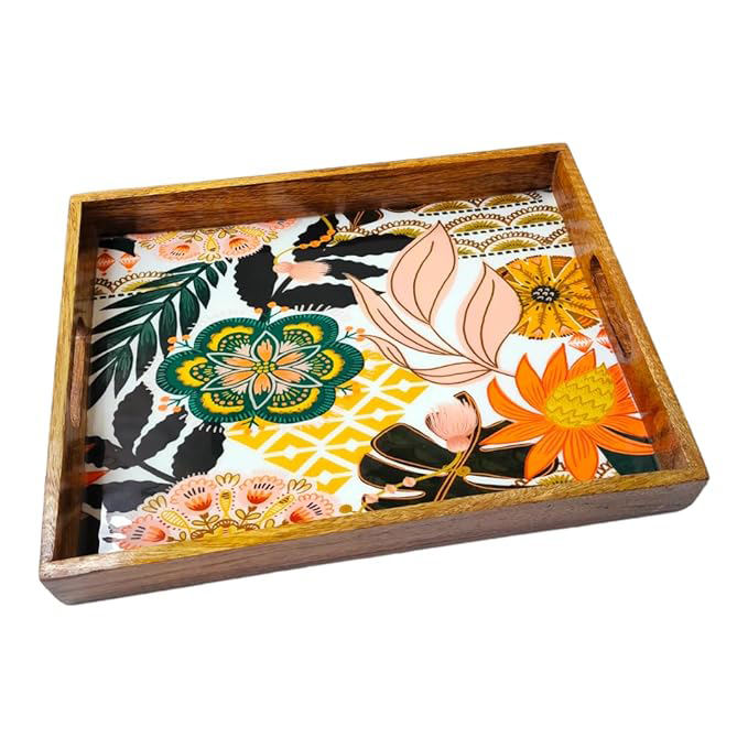 Superior Best Quality Wholesale Price Wooden Snack Platter Enamel Printed Serving Trya for Home & Restaurant Tabletop Decoration