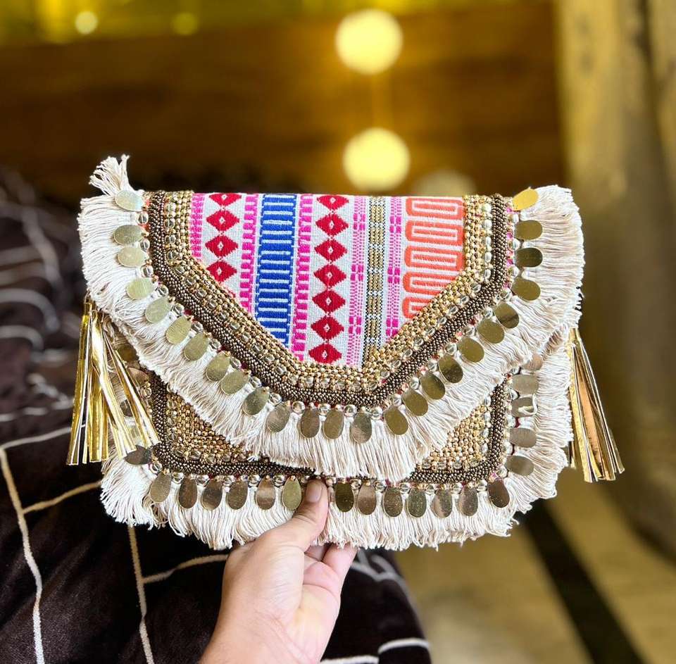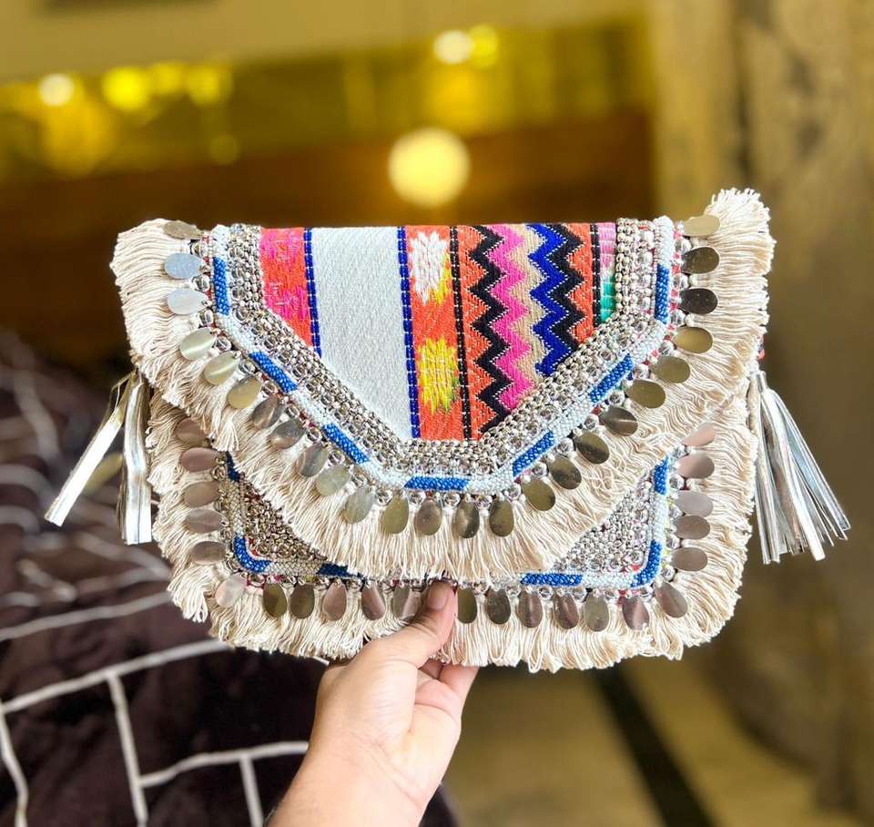 Superior Boho Chic Banjara Clutch Bag with Vibrant Beadwork and Embroidery Ideal for Bohemian Fashion and Special Events