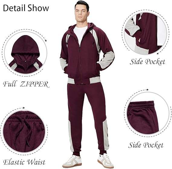 Superior International Men's High Quality Hooded Athletic Streetwear Tracksuit Sweatsuit Long Sleeve Full-Zip Jogging Sweatpants