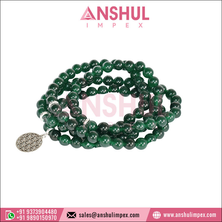 Superior Quality Best Selling Handmade Wholesale Gorgeous Green Jade Crystals 108 Prayer Bead Meditation Mala Bracelets