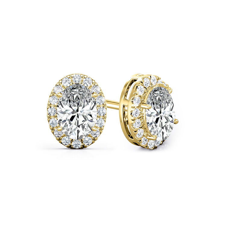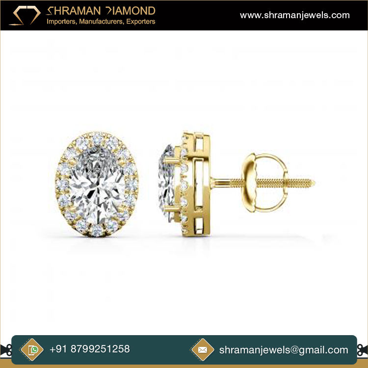 Women's Elegant Trendy 14K Solid Gold Classic Halo Stud Earrings Minimalist Oval Cut Moissanite VVS Diamond Fine Screw Back Gift