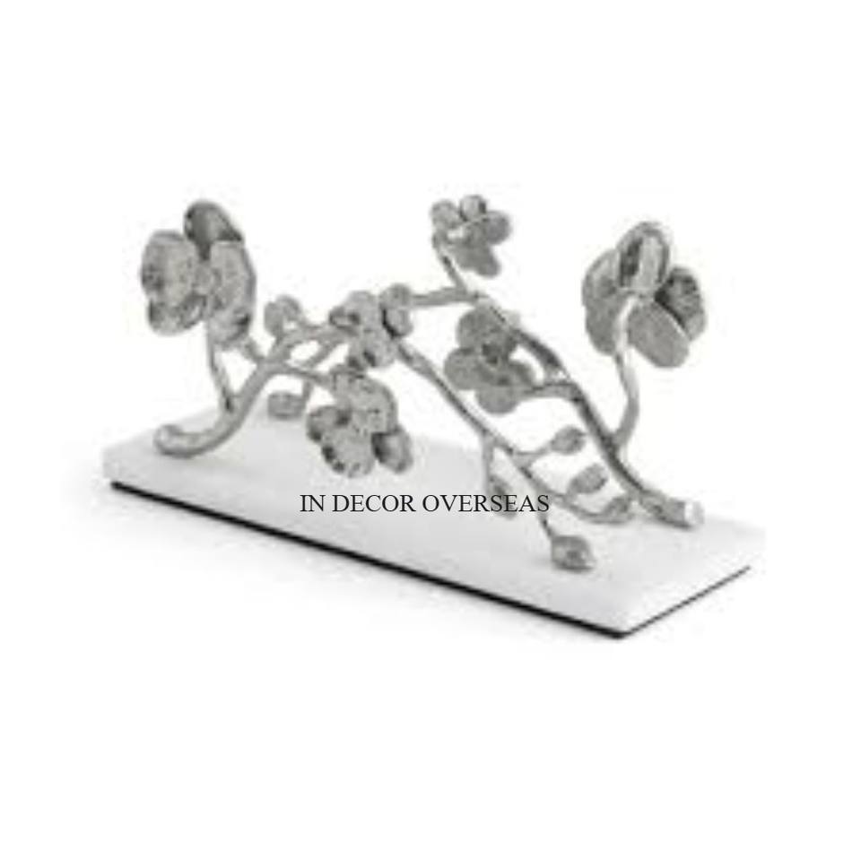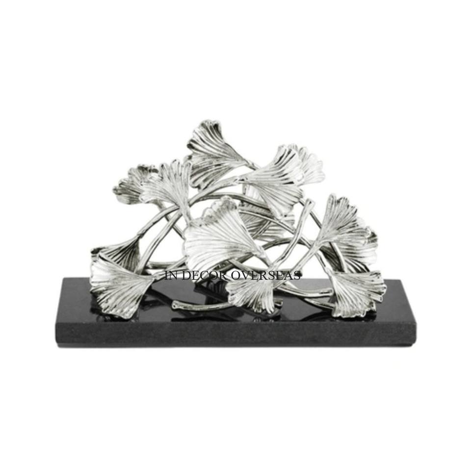 Superior Quality Black Color Marble And Silver Shiny Polished Metal Gingko Leaves Designer Attractive Look Napkin Holder Supply