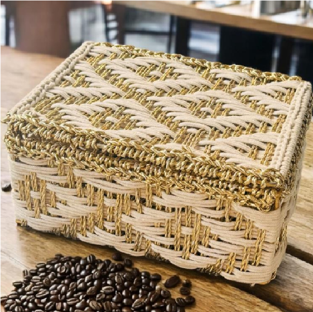 Superior Quality Customizable Golden Beige Cotton Hamper Basket Rectangular Multipurpose Storage Organizer Box Made in India