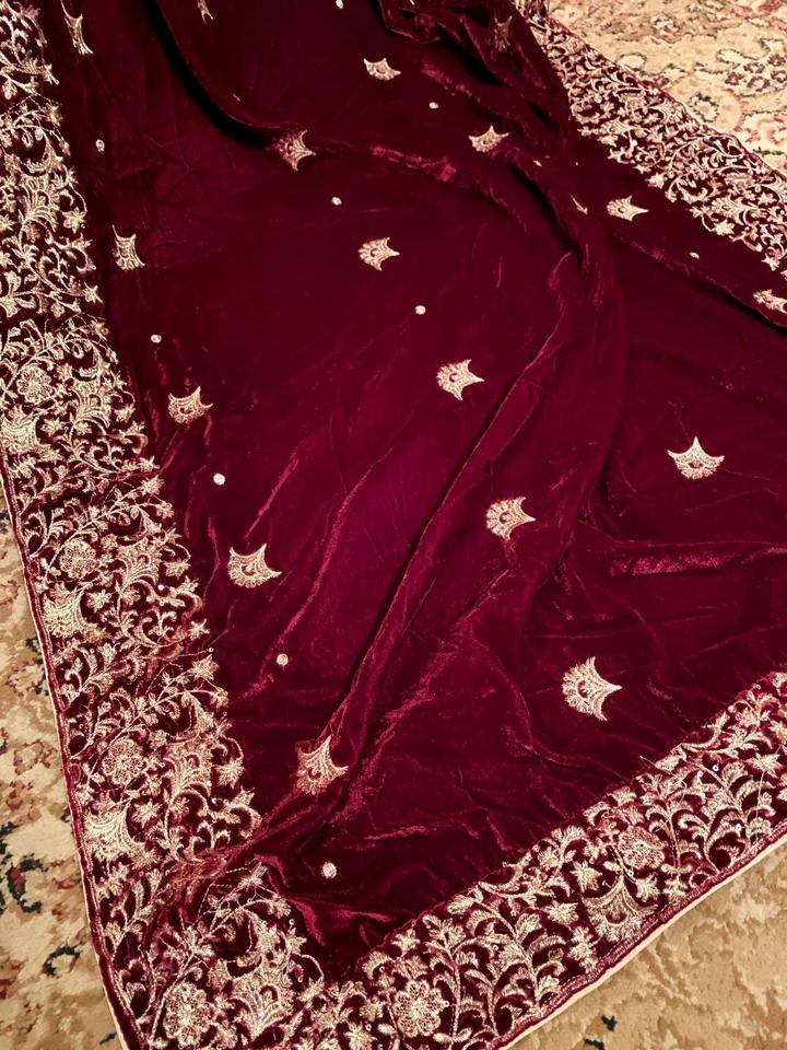 Superior Quality Goodshopping Luxury Velvet Shawl Women Solid Pattern Zari Embroidery Sequin Work Breathable Winter Season Made
