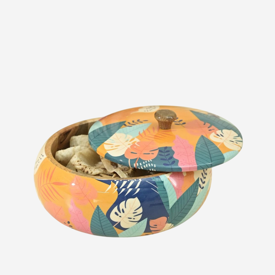 Superior Quality Hand-Enamelled Mango Wood Chapati Box for Kitchen & Dining Serving Ware Table Top With Lid Hot Pot