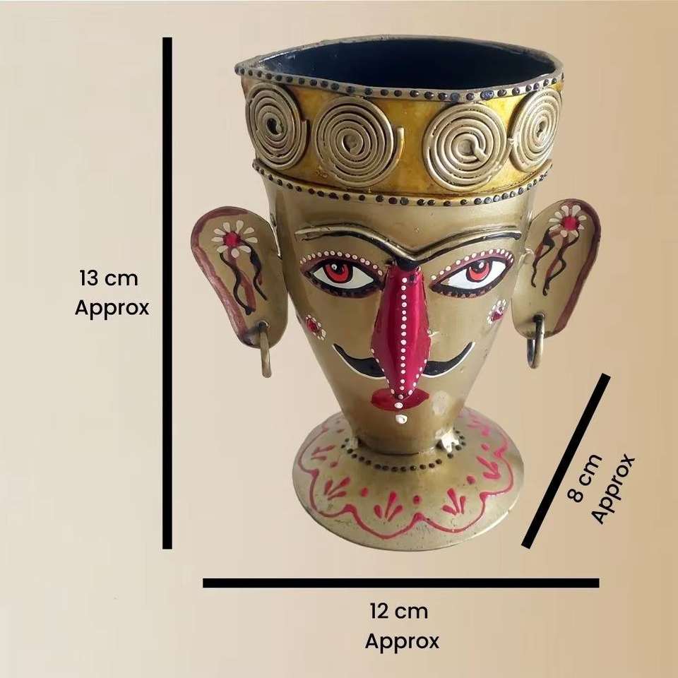 Superior Quality Indian Handmade Iron Face for Desk Organizer Painted Art Rust Free Pen Holder Festive Office Decor at Bulk Rate