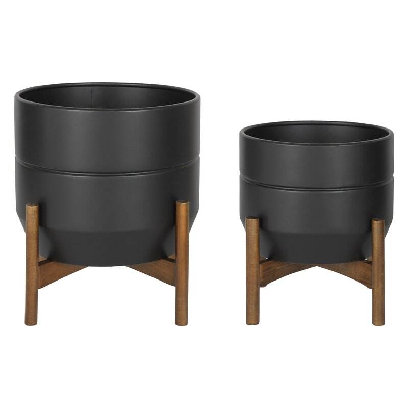 Superior Quality Product Luxury Attractive 2 Piece Black Iron Hanging Round Wire Planter Set For Interior Home Hotel Decoration