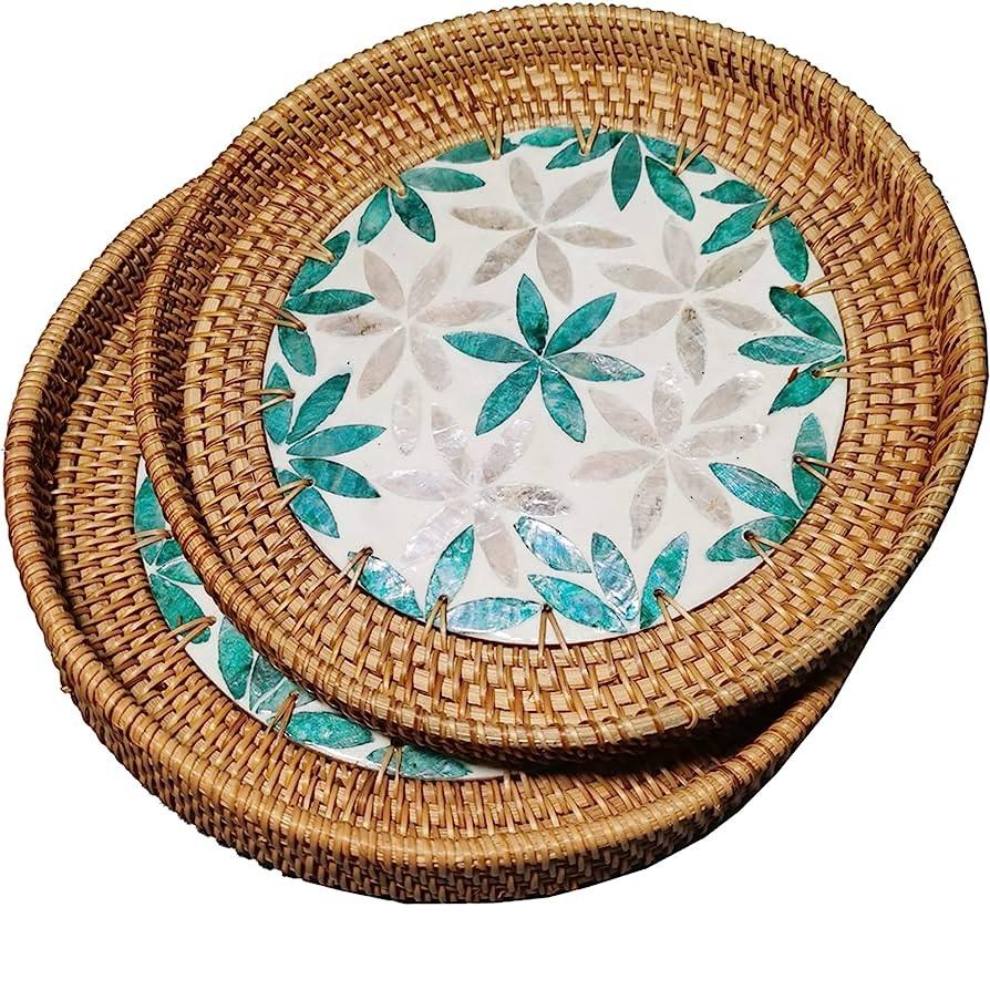 Superior Quality Rattan-Shaped Wooden Serving Tray for Kitchen Home Wedding Party Tabletop Decor for Dinnerware Food Serving