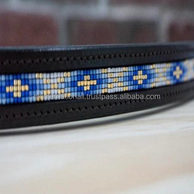 Superior Quality Thick Bridle Leather Black Horse Brow Band Empty Channel Inlaid with Designer Multicolor Beads Hotfix Chain