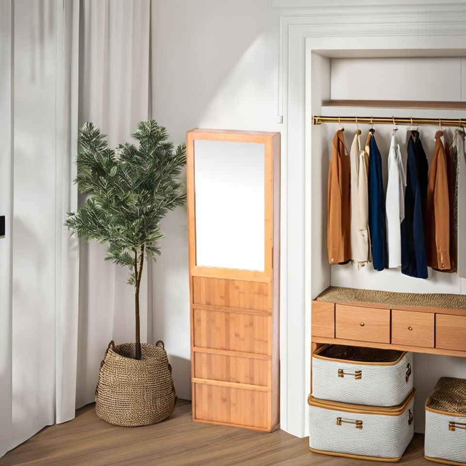 Superior Quality Wall-Mounted Jewelry Storage With Mirror Hot Selling Bamboo Jewelry Storage Shelf