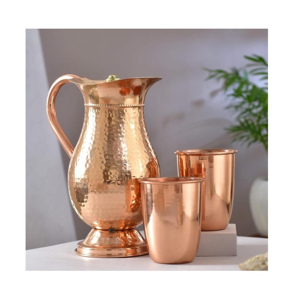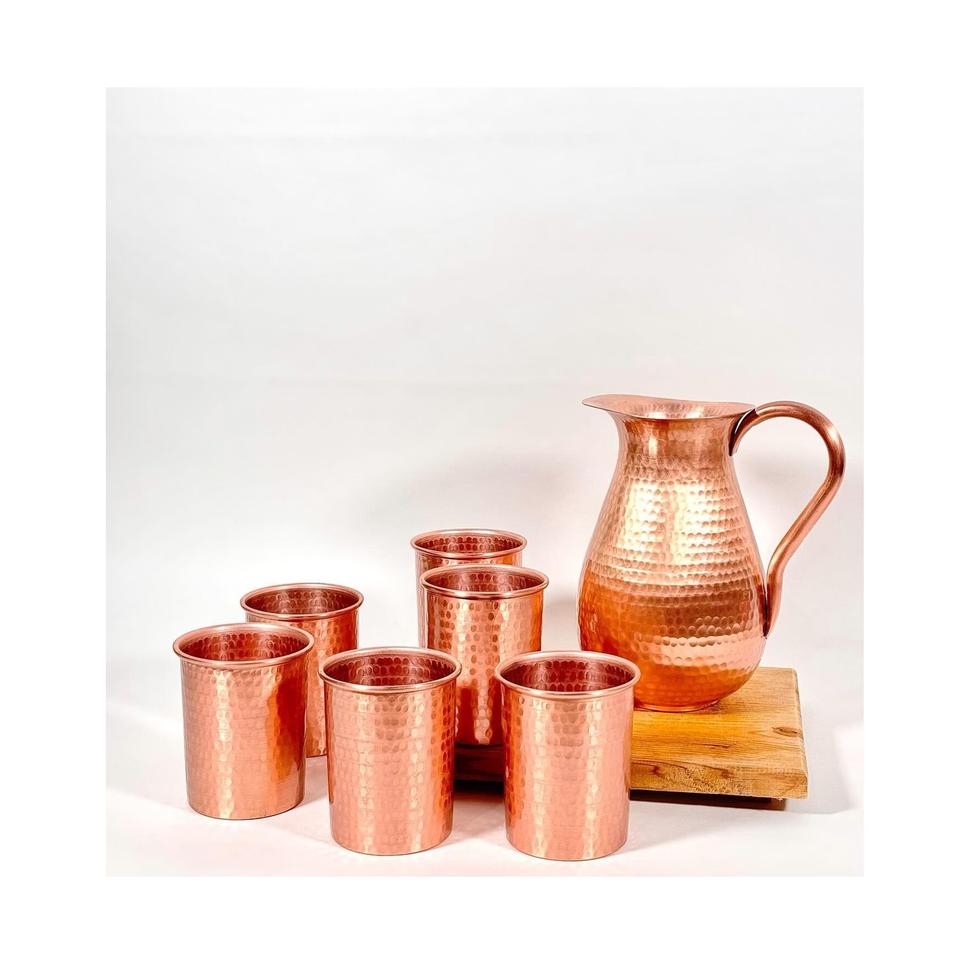 Superior handcrafted copper jugs and tumblers set promoting clean natural hydration and adding warm charm to home interiors