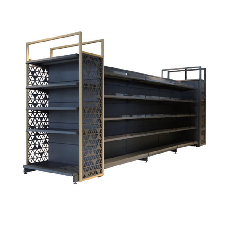 Supermarket Food Gondola Shelving Double-sided Retail Metallic Heavy Duty Freestanding Shelf Display Rack and Stands for Breads