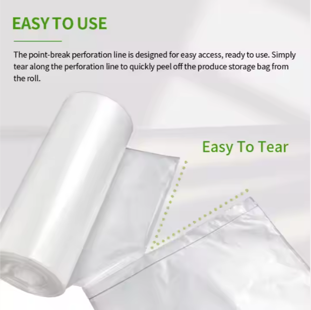 Supermarket Plastic Grocery Bags Food Pe Plastic Bag Roll Supermarket Produce Bag For Food Freezer HM brand