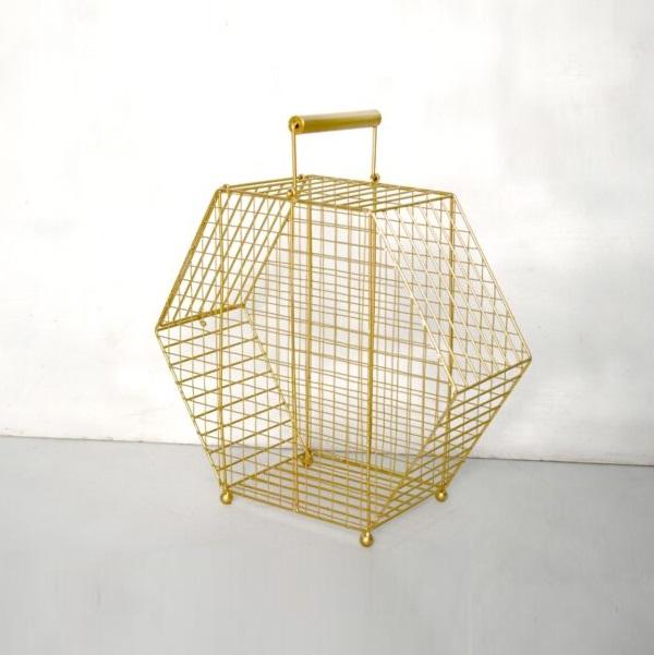 Supper and Fancy Design Kitchen Decorative Metal Wire Basket Low Price Shopping Basket Good Quality Gold Plating Basket