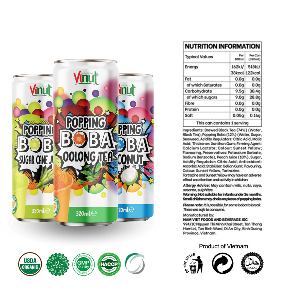 Supplier Beverage Soft Drink - 320ml Popping Bubble Pearl Boba Tea Coconut Water Bottle - Free Sample/Private Label OEM, Halal