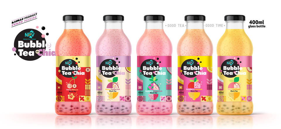 Bubble Tea With Chia Seed 400ml Glass Bottle