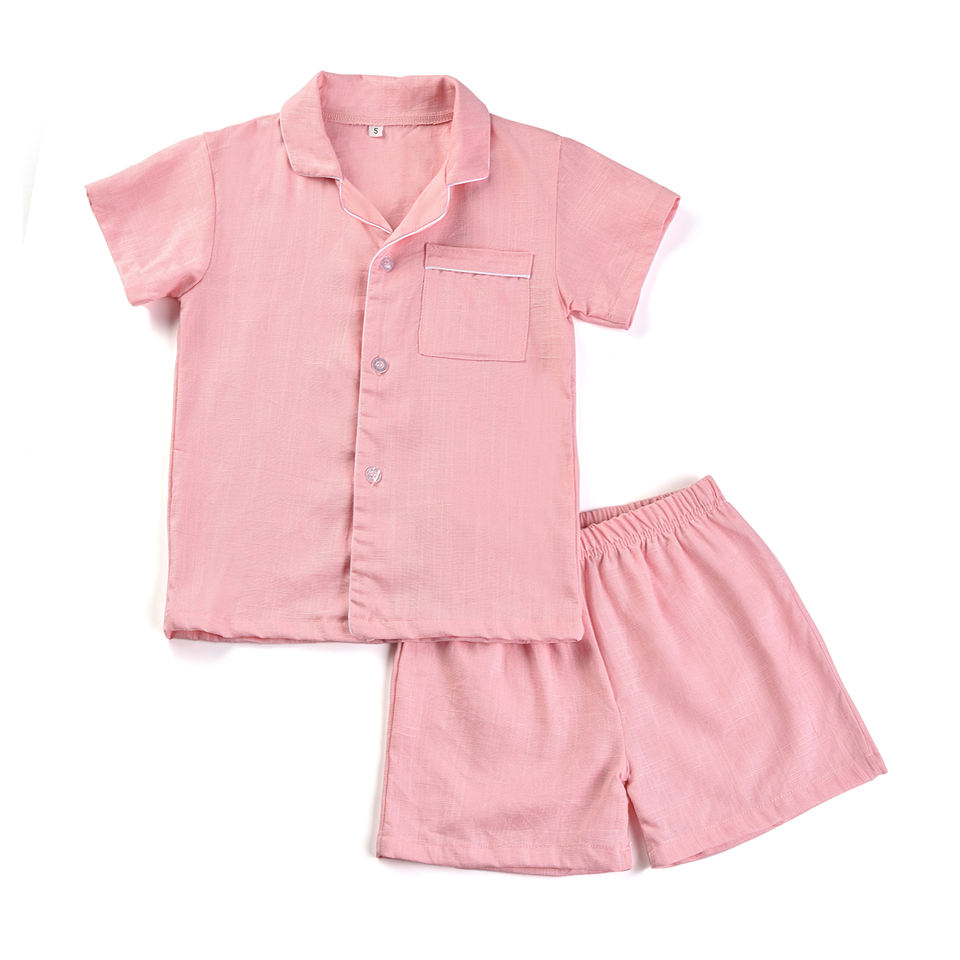 Supplier Linen Fabric Adult Pyjamas Set Family Pjs Boutique Girls Short Sleeve Pants Kids Pajamas Boys Sleepwear