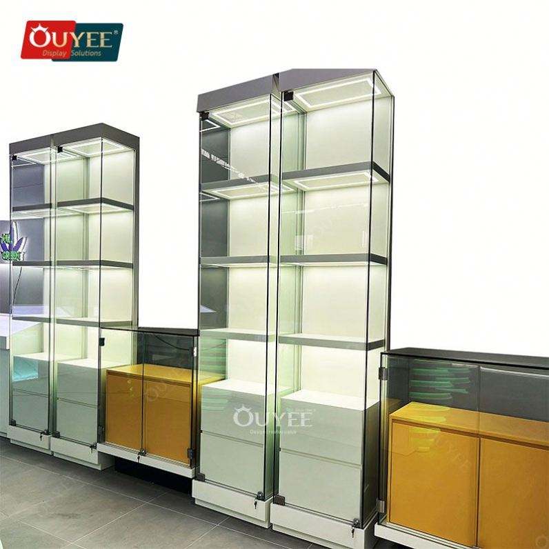 Supplier Wooden Display Showcase Lockable Glasses Cabinet Dispensary Design and Construction Tobacco Display Rack