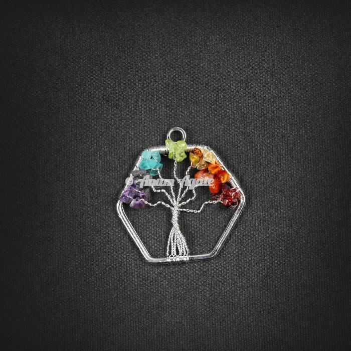 Supplier and Wholesaler of Tree Of Life Pendant in Rectangle Shape 7 Chakra Healing Crystal Pendant Necklace Metaphysical Energy