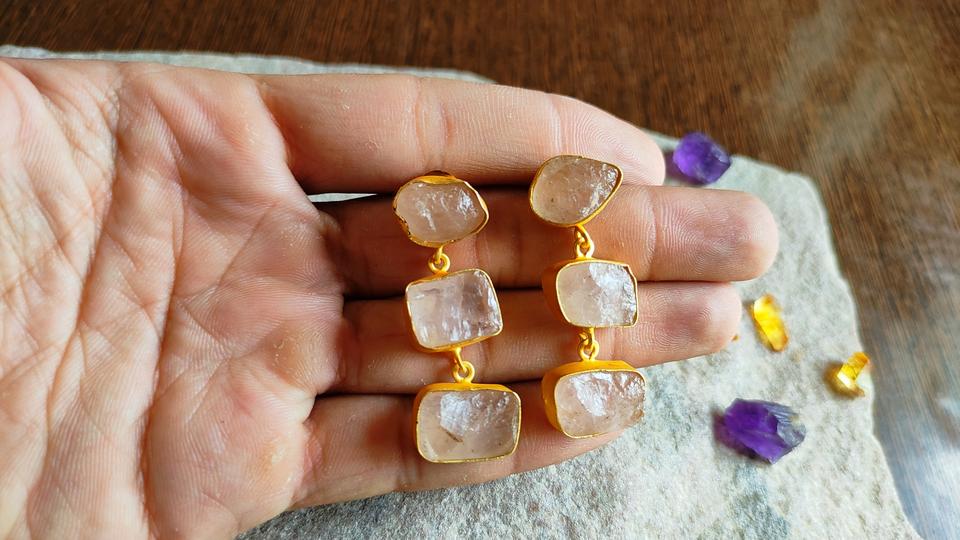 Suppliers of Pink Rose Quartz Earrings Drop for Women New Trendy Gemstone Designs Indian Dealer of Natural Stone Jewelry Ladies