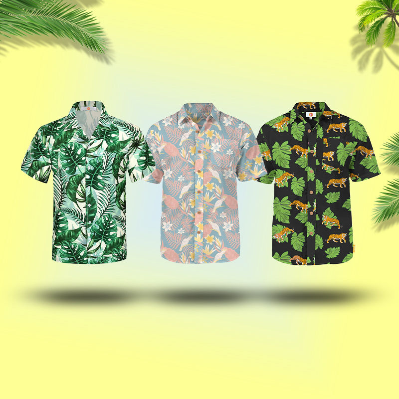 Support Custom Fashion Printing Floral Shirt for Men 100% Cotton Hawaiian T-shirts