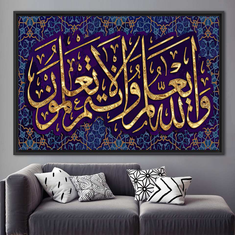 Surah Al-Alaq-5 Canvas: Luxury Muslim Wall Art Print,1P:Black Framed