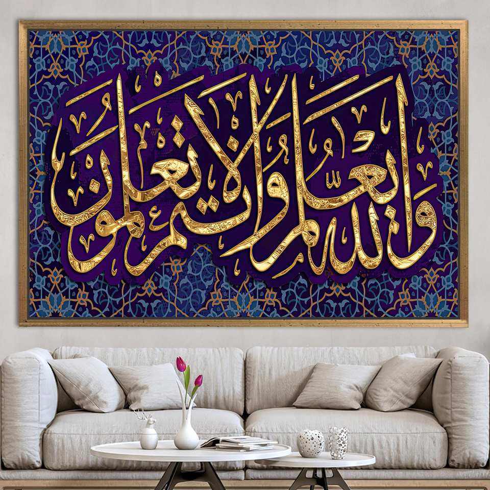 Surah Al-Alaq-5 Canvas Print: Luxury Muslim Gift Wall Art,1P:Gold Framed