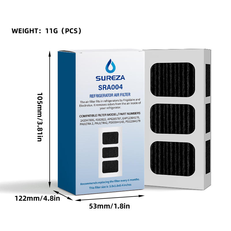 Sureza Refrigerator Air Filter SRA004 3.8x1.8x0.4 Inches Odor Absorption For Frigidaire Electrolux