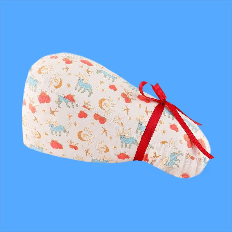 Surgical Cap Ponytail Turban Caps Tie Back Hats Dental Scrub Caps Turban Breathable Printed Cute for Nail Salon