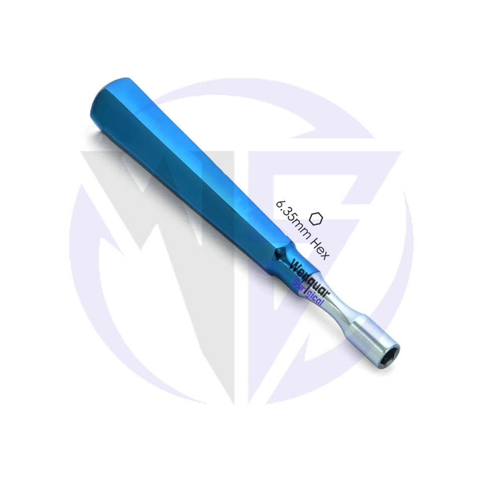 Surgical Dental Implant Screwdriver 6.35mm Hex Long Handle Tool Manual Hand Key Adapter for Clinics and Labs