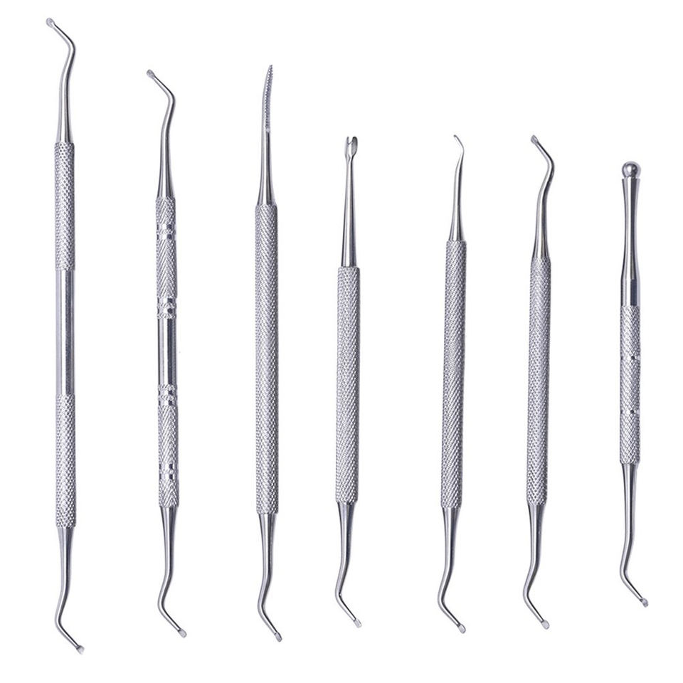 7-Piece Double Sided Podiatry Curettes Files Set Surgical Stainless Steel Instruments for Pedicure Treatment Manual Power Source
