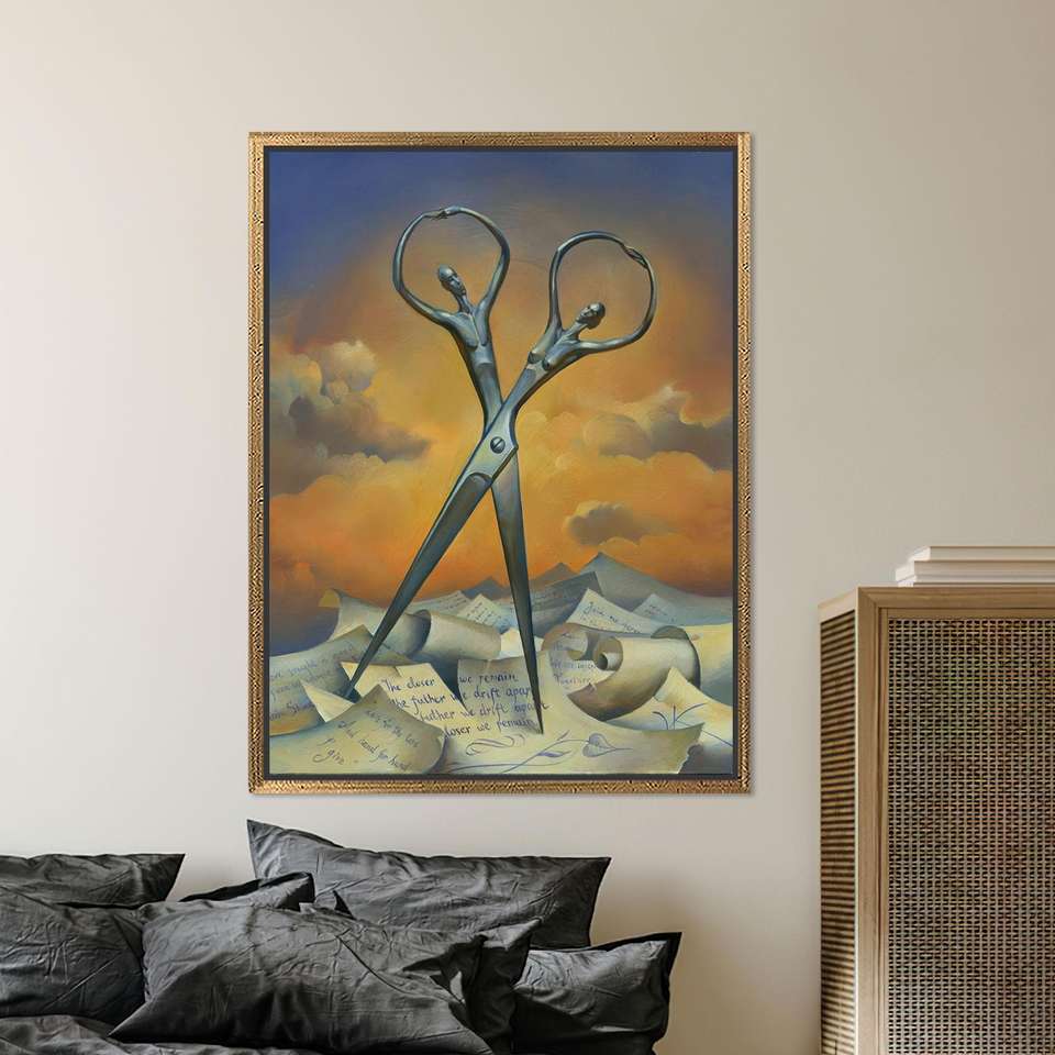 Surreal Scissors Dance: Printed Canvas Wall Art, Symbolist Decor,Gold Framed