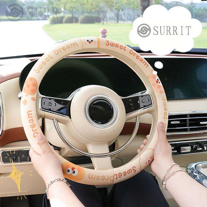Surrit Cartoon Corn Stitch Cheese Biscuit Pattern Steering Wheel Cover Soft Design for Car Interior Decor