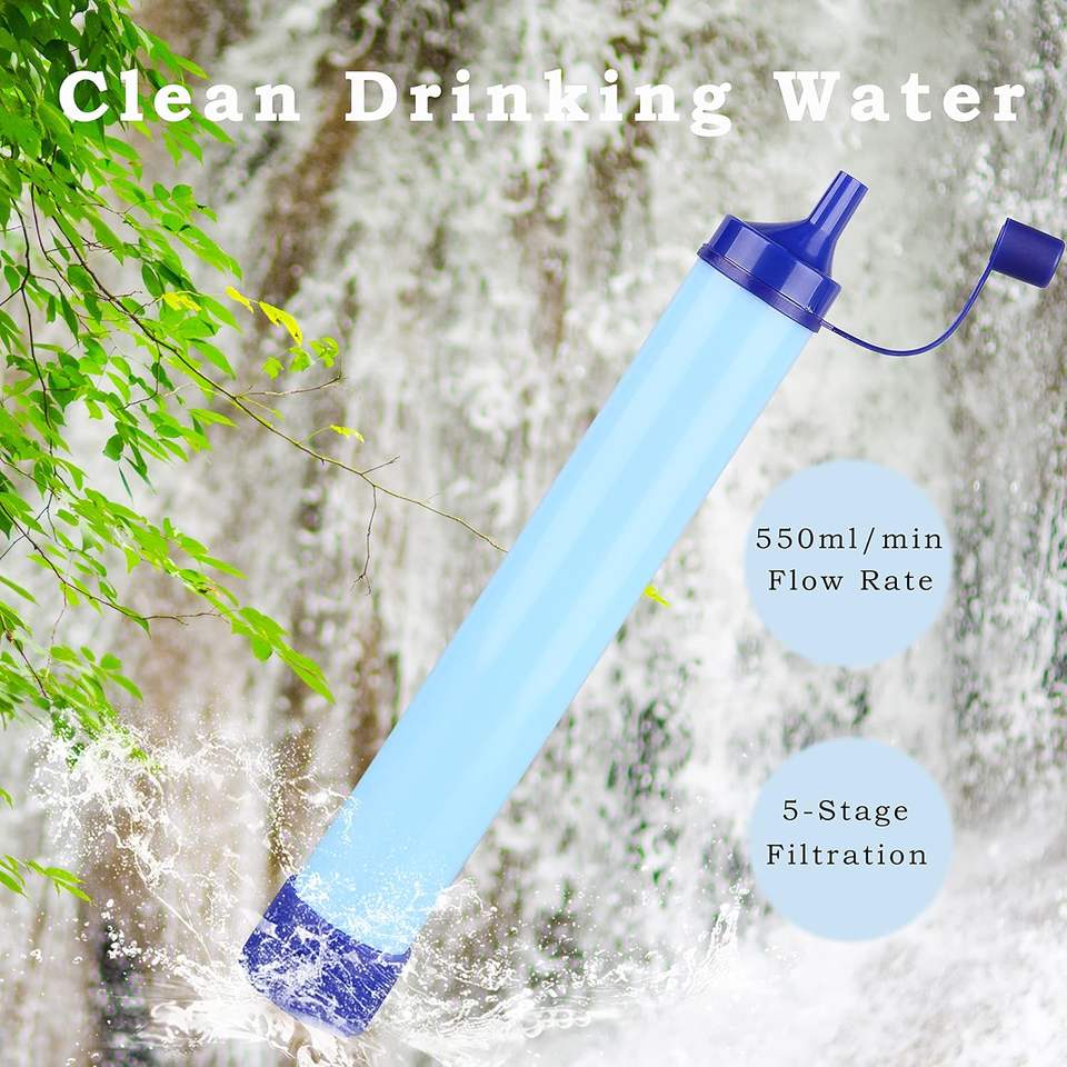 Survival Filtration Straw Emergency Preparedness Portable Manual Outdoor Water Filter 5-Stage Filtration High Flow Rate for