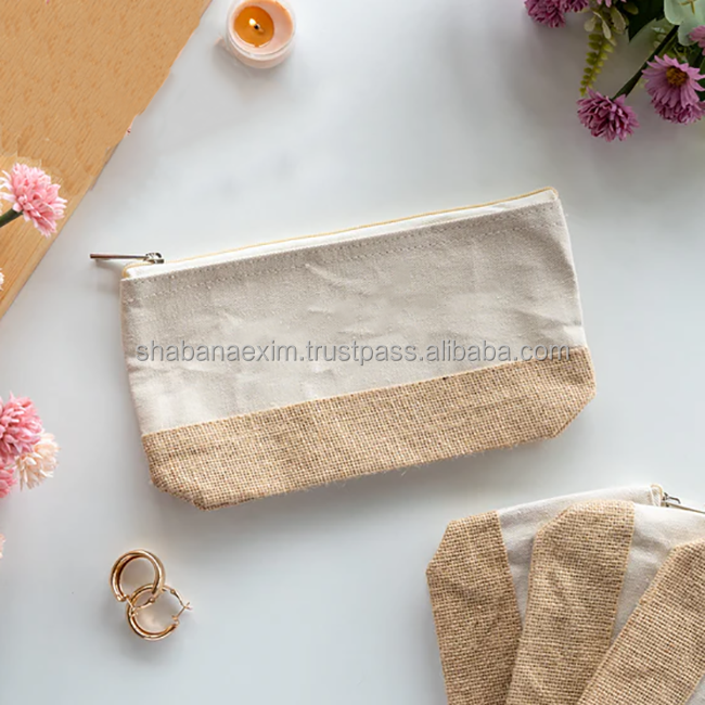 Sustainable Canvas Cotton Makeupp Pouch Bag Eco Friendly Small Capacity Wash Bag from Indian Supplier