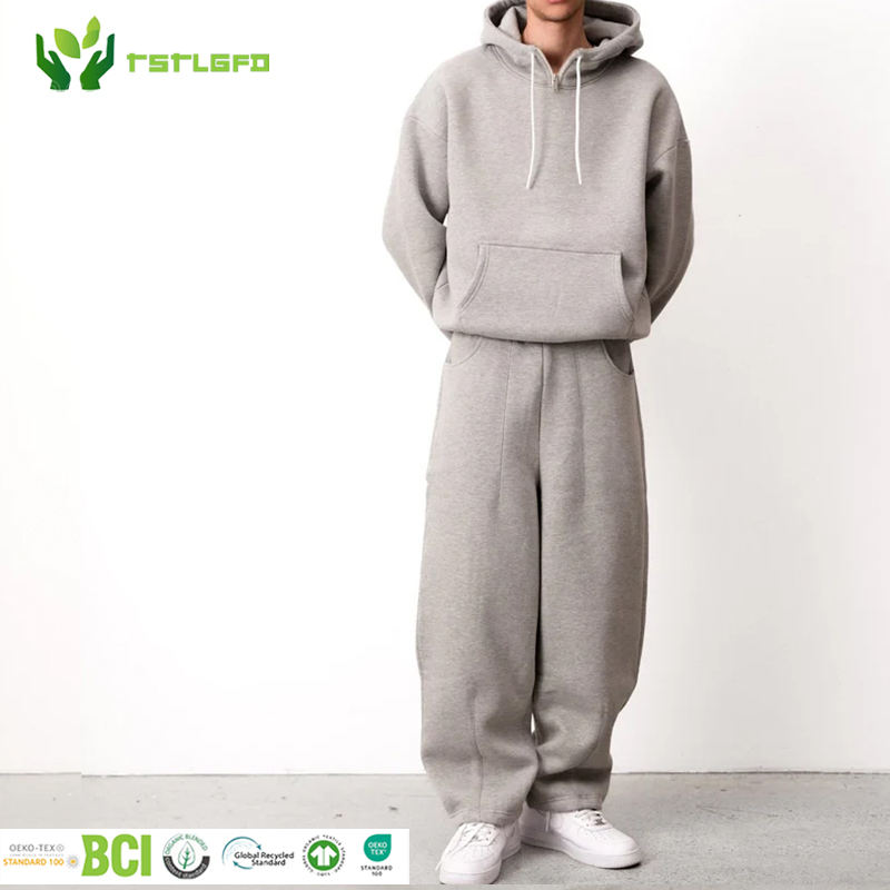Sustainable Custom Logo High Quality Oversized Half Zipper Boxy Solid Tracksuit Black Gray Casual Spring Cozy Sweatsuit for Men