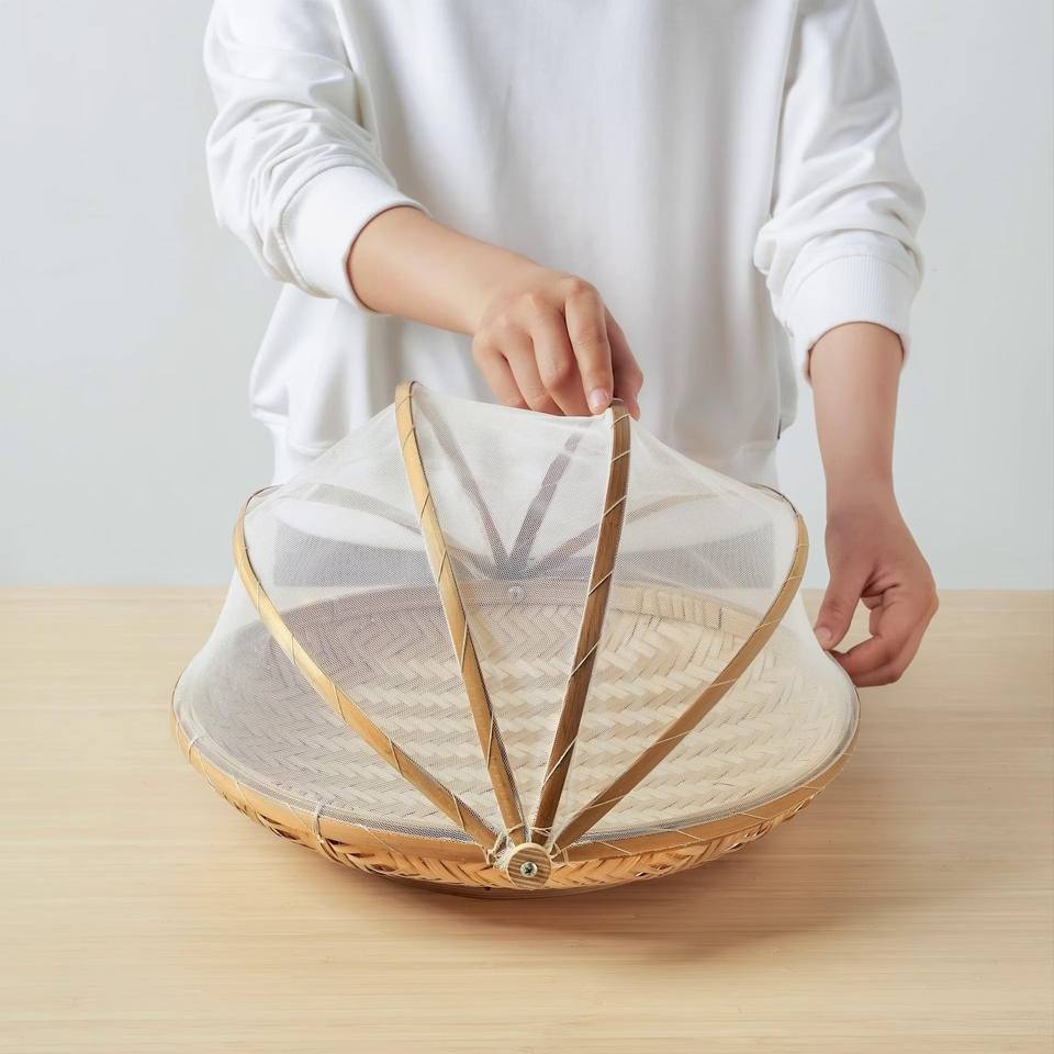 Sustainable Eco Friendly Collapsible Food Cover Round Bamboo Foldable Netted Tent Foods Mesh Tents