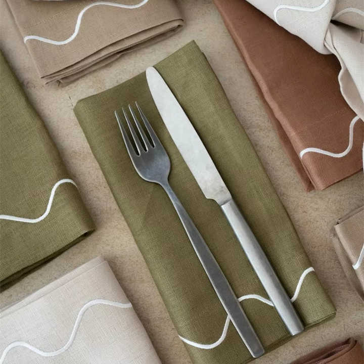 Sustainable Embroidered Scallop Edge Napkins Placemats Set Cotton Linen Wave Design Organic Eco Friendly Decor Napkin Placemat
