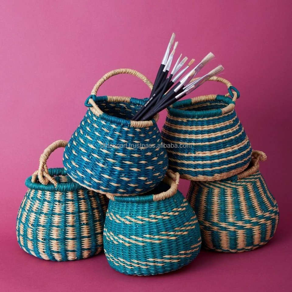 Sustainable Handwoven Bolga Basket Natural Color Seagrass Durable Folding Multifunction with Lid/Handles EU Wholesale
