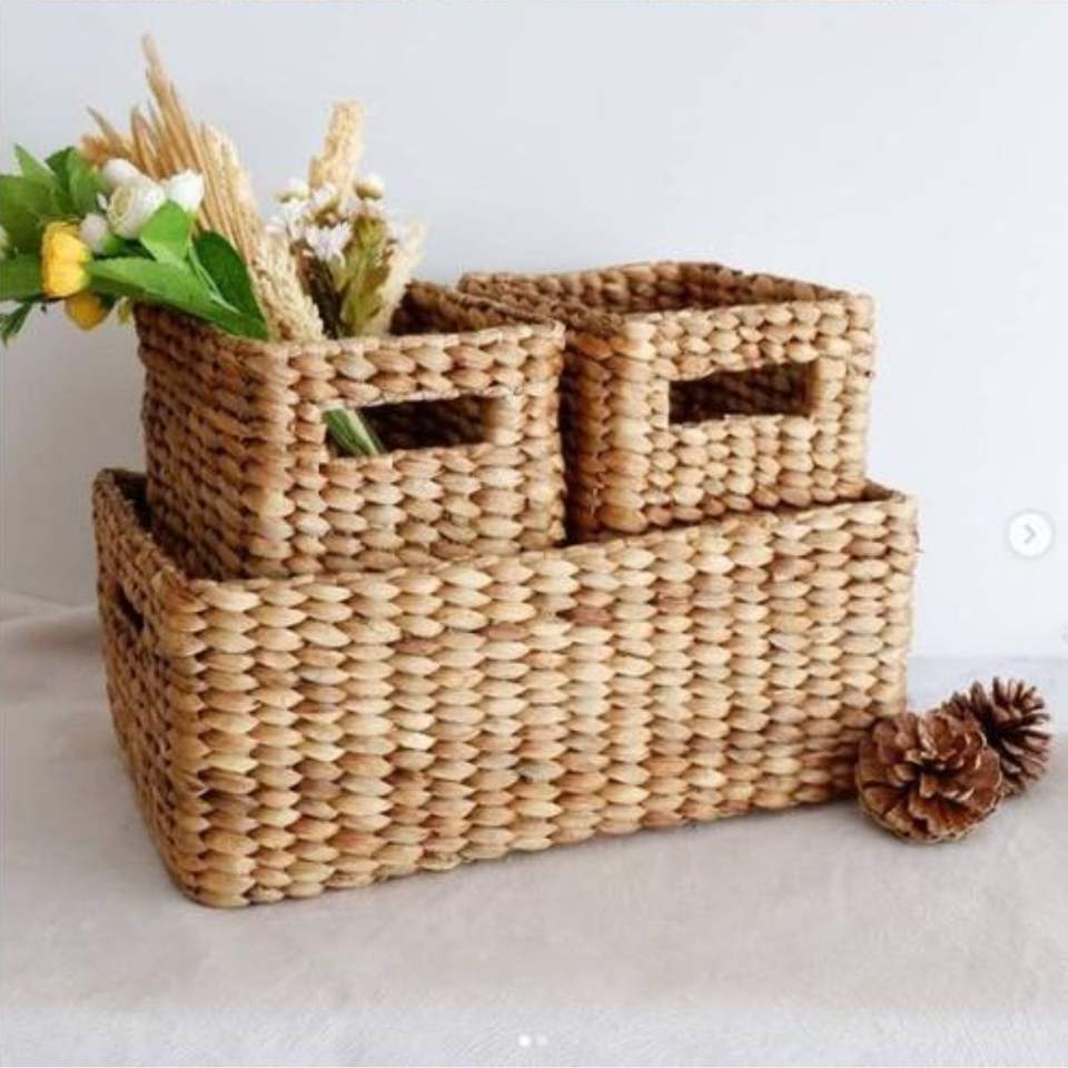 Sustainable Handwoven Indonesia Rattan Storage Basket Stylish Wicker Organizer with Handle for Picnic & Living Room Decor
