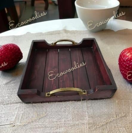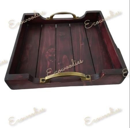 Sustainable Home Decor Breakfast Coffee Antique Rectangular Dark Brown Tray Solid Wooden Serving Tray With Metal Handles