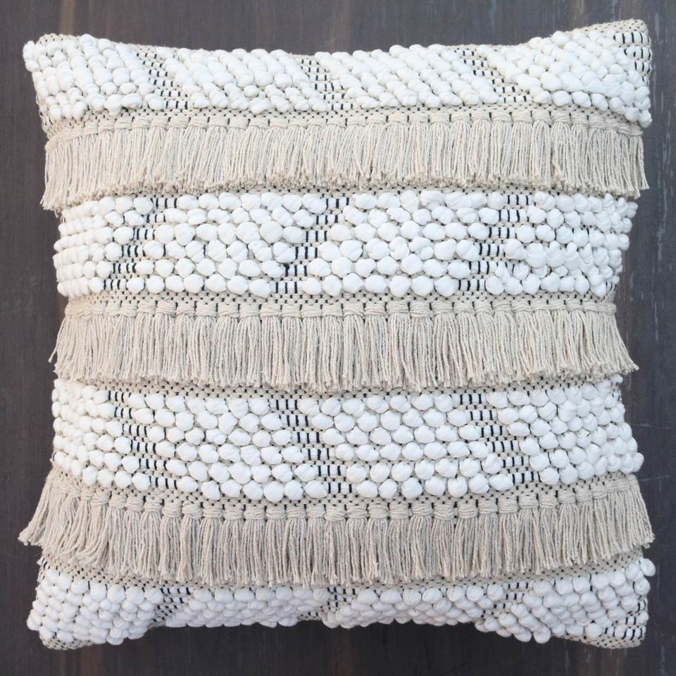 Sustainable Moroccan Tribal Tassel Woven Tufted Seat Cushion Cover 20x20inch Geometric Pillow Covers for Home Use