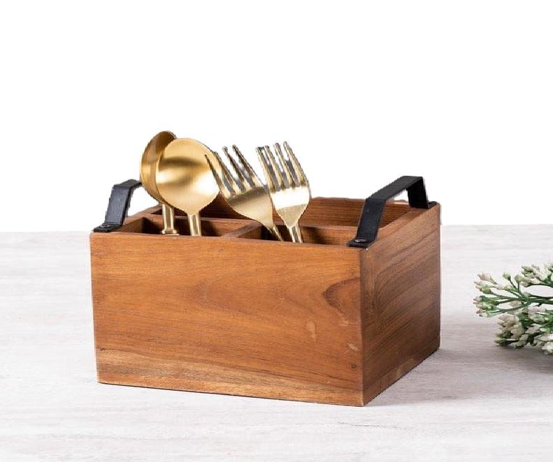 Sustainable Quality Wooden Cutlery Holder Rectangular shape Box With Multiple Compartments Kitchenware Hotelware At Best Price