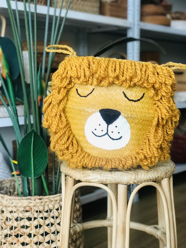Sustainable Seagrass Storage Basket with Handle Lion Shape Cute for Kids & Nursery Rooms Decoration
