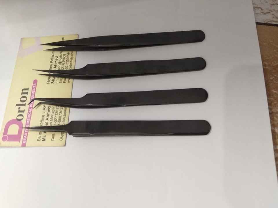 Sustainable Stainless Steel Professional Plasma Black Diamond Grip Tweezers for Eyelash Extension Diamond Grip Lash Tweezers Set