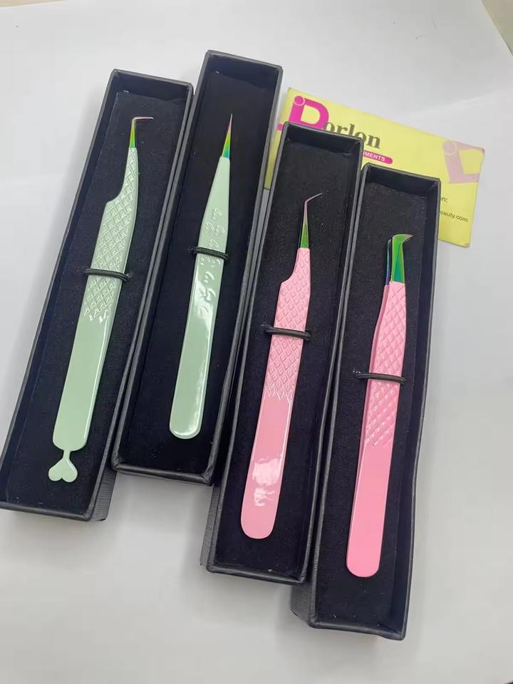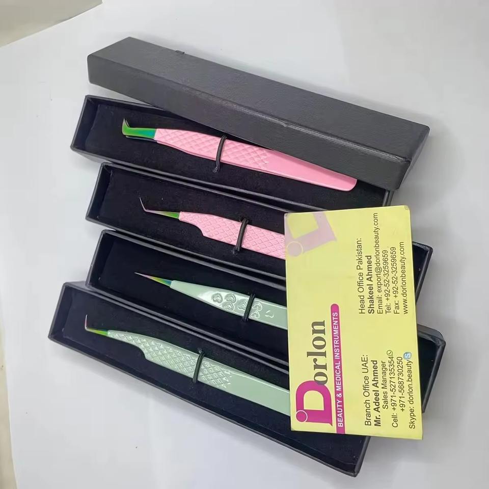 Sustainable Stainless Steel 45 90 Degree Lash Tweezers Volume Boss Eyelash Extension Tweezers with Straight Pointed Isolation