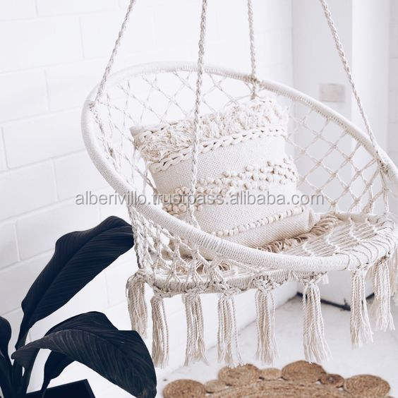Sustainable Trendy Hanging Hammock Chair Macrame Swing White for Outdoor Deck Comfy Different Designs Swings