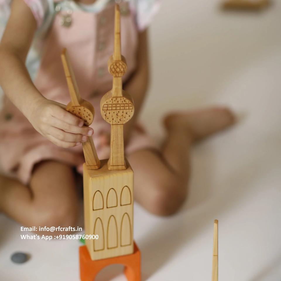 Sustainable Wooden Building Toys Montessori Puzzle Set for Brain Development in Kids