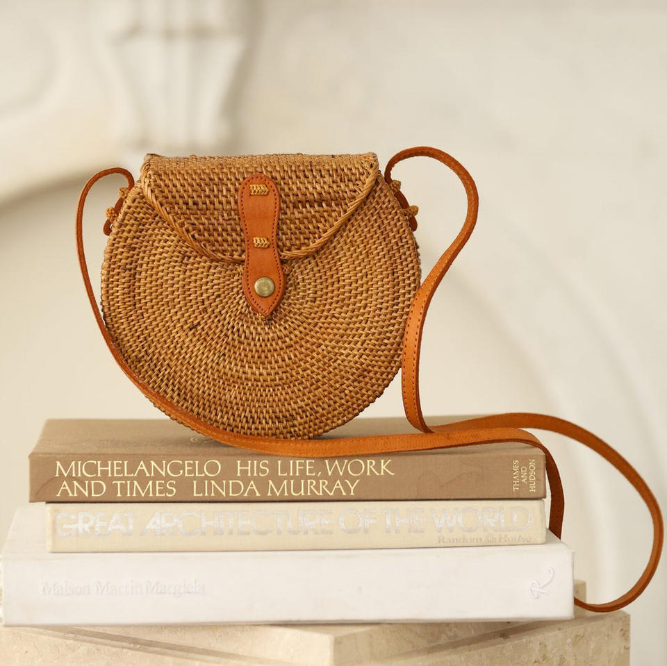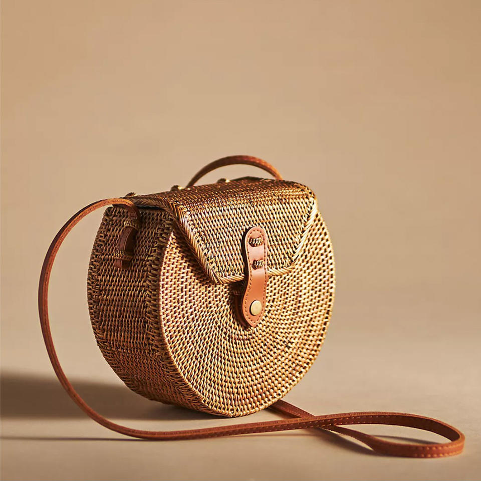 Sustainable round rattan bag high quality women handbag cheap price purse bags with closure lid